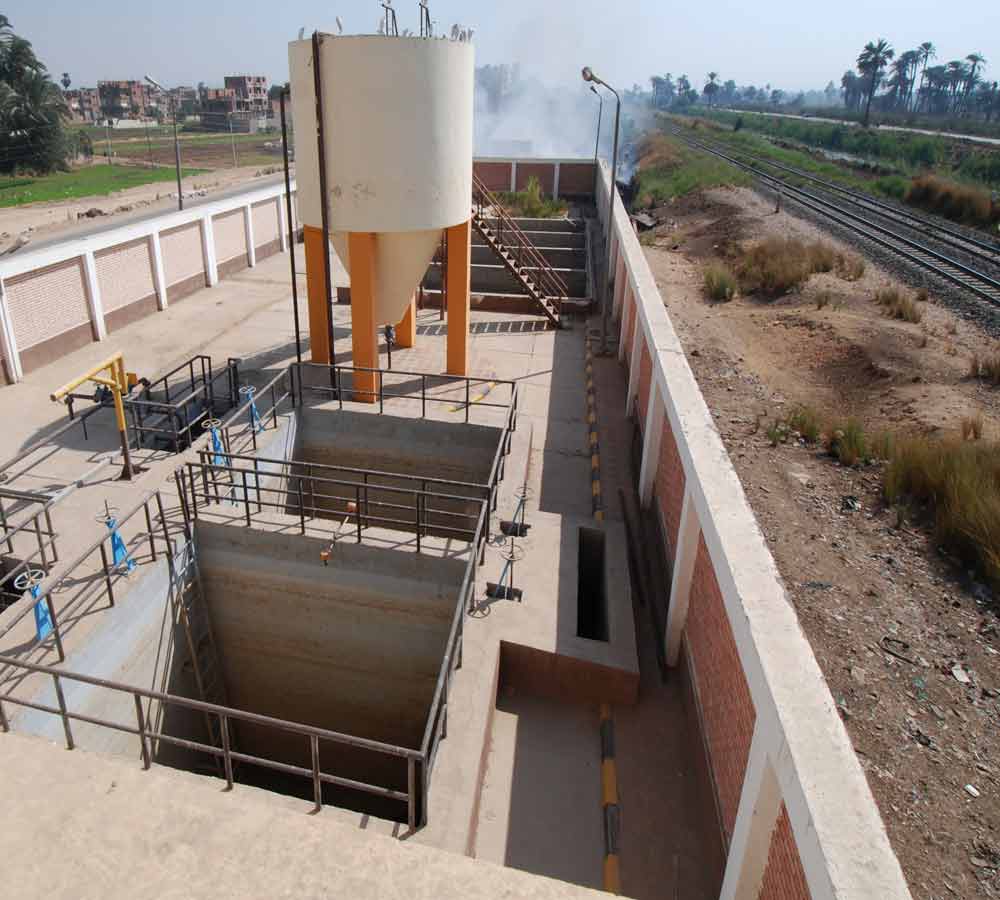 تصميم وتنفيذ جميع الأعمال اللازمة لتغذية عدد 22 قرية محرومة بالمياه وكل ما يلزم ذلك من: * أعمال مصدر المياه(أبار - وحدات ازالة حديد ومنجنيز - وحدات نقالى - وحدات معالجة ومحطات تنقية وتطوير وتوسعات المحطات القائمة ) 0 * وحدات تنقية الحديد والمنجنيز عدد 6 تصرف من 8700 : 30000 م3/يوم. * محطات سطحية عدد 7 تصرف من 870 : 17000 م3/يوم 0 * عدد 6 محطات كلورة سعة 4300 م3/يوم0 خطوط المواسير بأقطار مختلفة شاملة المحابس والقطع الخاصة والغرف : * مواسير GRP أقطار من 600 ، 700 مم بطول اجمالى 9.4 كم . * مواسير HDPE أقطار من 350 الى 560 مم بطول اجمالى 38.8 كم . * مواسير UPVC أقطار من 110 الى 280 مم بطول اجمالى 381.9 كم. * خزانات مياه : * عدد 22 خزان عالى سعة من 200 الى 1000 م3 تصرف من 1380 : 2300 م3/يوم بارتفاع من 18.5 : 45 م.ط . * عدد 45 بئر ارتوازى .